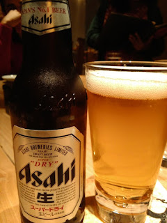Asahi Super Dry beer is crystal clear yellow in color and has a light amount of visible carbonation. It has a thick, white head and a clear, bubbly, straw appearance, with a decent amount of lacing left behind. The aroma is of indistinguishable grains and some slight sweetness. Taste is initially of malt, but then after few sips, one encounters a partially sweet alcohol flavor. The aftertaste is grassy and stinging. The mouthfeel is light and watery, and finishes crisp, clean, refreshing and super dry. Overall, I really like this beer, and recommend it.